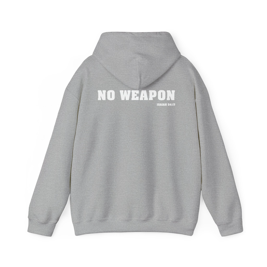 - Back Design: Statement print NO WEAPON – Isaiah 54:17 for strength and faith.